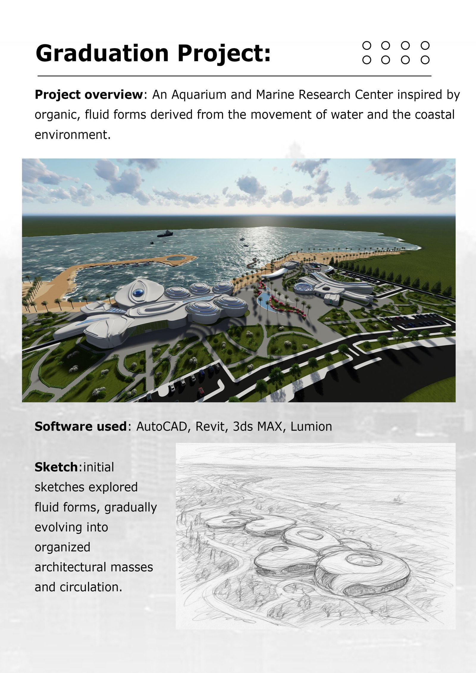 مهندسة معمارية حديثة التخرج, مشروع" أكواريوم و مركز أبحاث مائية على ساحل المدينة الرياضية في محافظة اللاذقية في الساحل السوري" نلت درجة 83% في مشروع التخرج