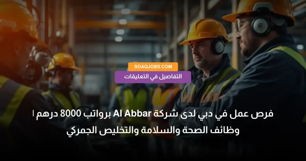 إذا كنت تبحث عن فرص عمل في دبي برواتب جيدة وبيئة عمل احترافية، فقد أعلنت شركة Al Abbar عن توفر مجموعة من الوظائف المميزة في دبي – منطقة جبل علي، وذلك في مجالات الصحة والسلامة والإنتاج بالإضافة إلى مجال التخليص الجمركي. توفر هذه الفرص رواتب تصل إلى 8000 درهم إماراتي مع نظام عمل منتظم من الاثنين إلى الجمعة، مما يجعلها من الفرص الجيدة للباحثين عن الاستقرار الوظيفي والتطور المهني في دولة الإمارات العربية المتحدة.